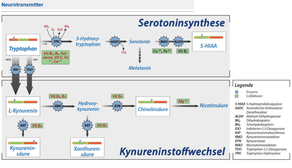- Eine Umleitung von Tryptophan in den Kynurenin-Weg durch Entzündungen